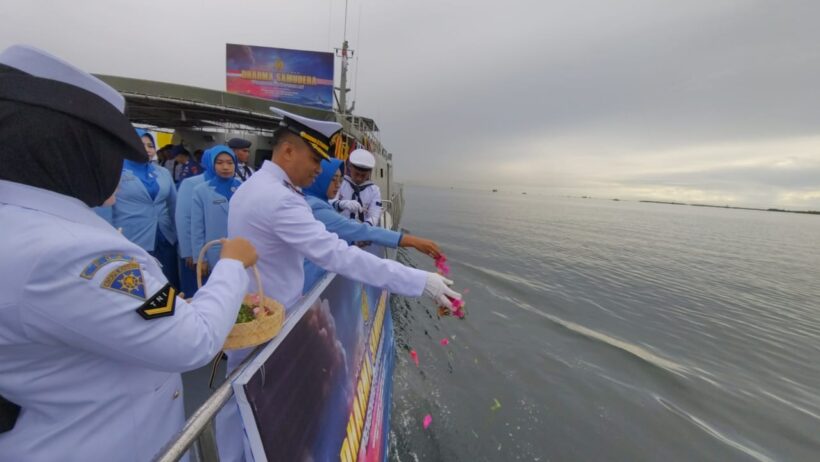 BONTANG, LIRANEWS.co | Pangkalan TNI Angkatan Laut (Lanal) Sangatta menggelar upacara tabur bunga di perairan Bontang dalam rangka memperingati Hari Dharma Samudera 2026, Kamis (15/1/2026).