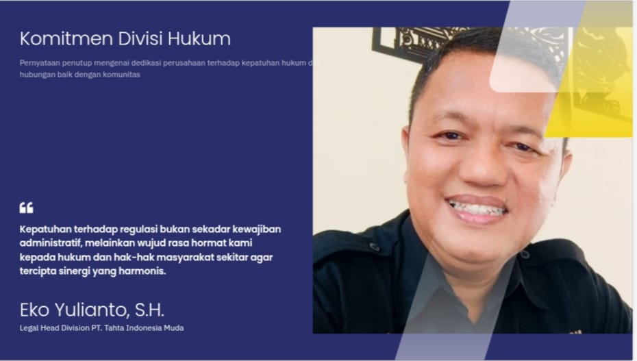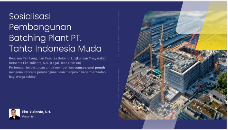 Eko Yulianto, S.H., Legal Head Division PT. Tahta Indonesia Muda, mengungkapkan bahwa hasil sosialisasi yang melibatkan perwakilan dinas terkait dan tokoh masyarakat telah dilaporkan kepada pimpinan perusahaan.