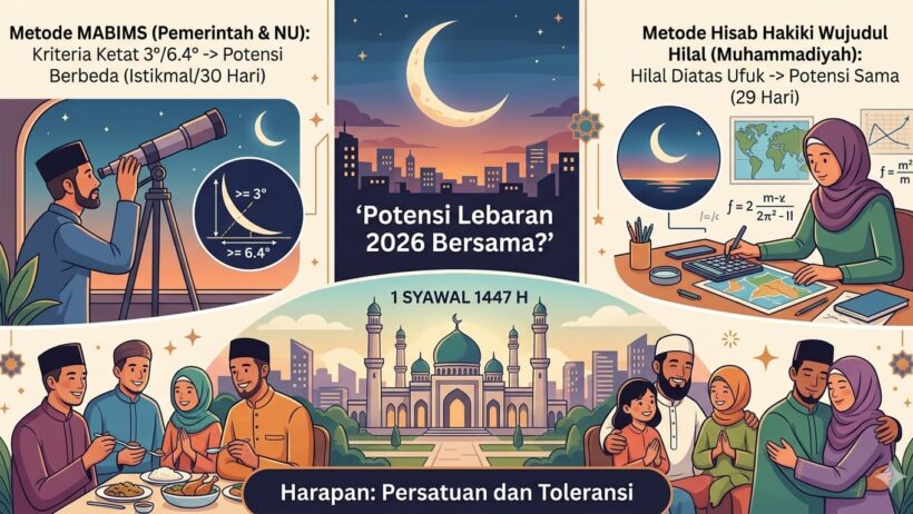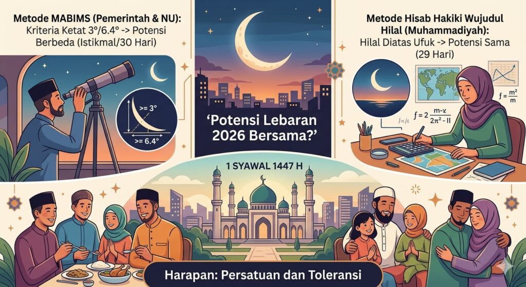 Terdapat dinamika menarik terkait penetapan 1 Syawal tahun ini. Dua organisasi masyarakat Islam terbesar di Indonesia, Nahdlatul Ulama (NU) dan Muhammadiyah, berpotensi merayakan Idul Fitri secara bersamaan. Namun, harapan untuk merayakan Lebaran secara serentak pada Kamis, 19 Maret 2026, dipastikan tidak akan terjadi karena adanya perbedaan mendasar dalam metode penetapan awal bulan Hijriah.