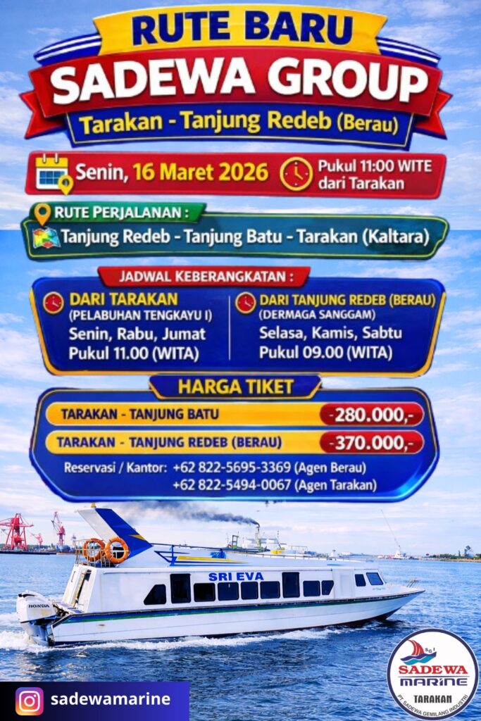 TARAKAN, LIRANEWS.CO | Masyarakat yang hendak melakukan perjalanan antara Tarakan (Kalimantan Utara) dan Berau (Kalimantan Timur) kini memiliki alternatif transportasi laut baru. Sadewa Grup resmi meluncurkan layanan speed boat yang akan melayani trayek strategis penghubung dua provinsi tersebut.